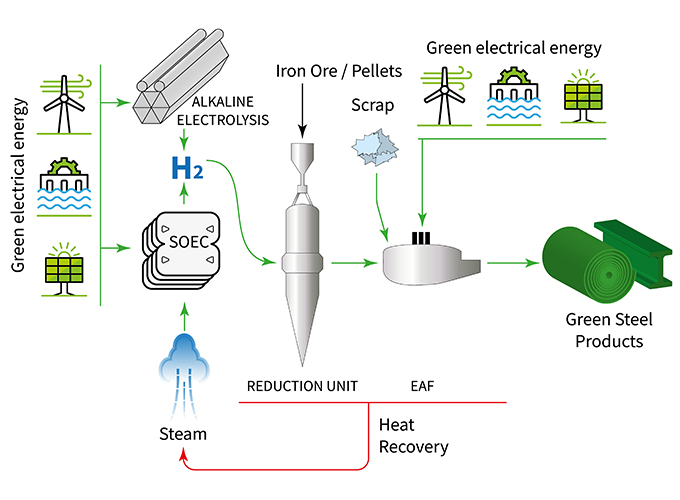 Các công nghệ như lò hoàn nguyên trực tiếp DRI-H₂ và lò điện hồ quang EAF đã thương mại hóa.